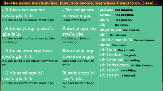 https://open.spotify.com/show/0Wirq7SeYnoQ6u9ysqODfP?si=4fad86d490cc4cc4The first things to do when learning a new language is trying to speak, speak, and speak. Converse and converse with it. Do much on one to one conversation. With a vocabulary of about 100 words, converse more with those who already know how to speak the set language. Master several common sentence patterns in it. Give more time to it. Print and revise your lessons. Keep practicing in your head, and don’t be ashamed to make a lot of mistakes. This lesson will help you to use common sentence patterns in the Nkwen language. Check below for many more speaking lessons and sentence patterns in the Nkwen language.